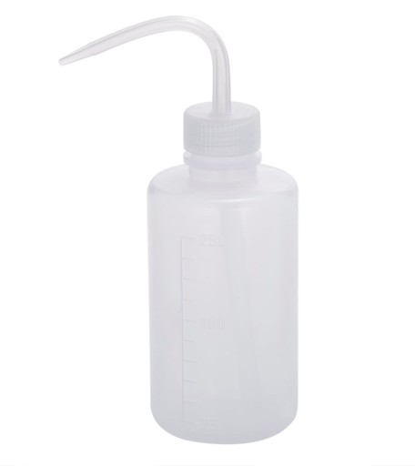 Kompaktowa butelka do mycia rzęs (tryskawka) o pojemności 250 ml. Duża dysza zapewnia wygodne spłukiwanie szamponu z rzęs. Przezroczysty zbiornik oraz dodatkowa podziałka umożliwia bieżący wgląd w pozostałą ilość wody.