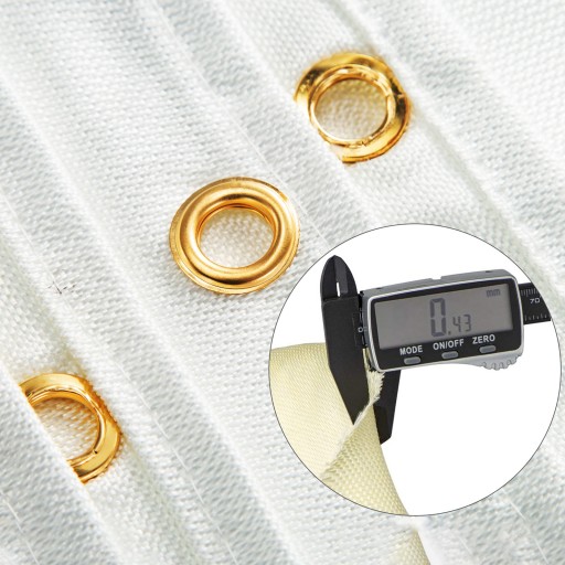 Aby utrzymać ciężar tkaniny i zwiększyć wszechstronność, koc ma mosiężne przelotki ze wszystkich 4 stron.