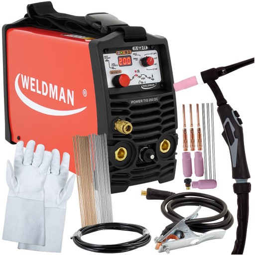 Spawarka inwertorowa WELDMAN POWER TIG 200 DC wykonana w technologii IGBT przeznaczona jest do spawania metodami: TIG DC, TIG DC Puls oraz elektrodą otuloną MMA. Zasilana jest z sieci jednofazowej 230V i umożliwia spawanie prądem o natężeniu do 200 amper.