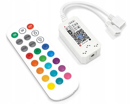 - SPECYFIKACJAWymiary pilota: 123 (dł.) x 34(szer.) x 8(gr.)/mmPilot: Fale radioweZasięg pilota: 10 mBateria w zestawie: TakWymiar kontrolera: 57(dł.) x 30(gł.) x 19,5(szer.)/mmMax. moc: 144WRodzaj taśm LED: 5pin RGBWNapięcie zasilania: 12-24V DCZłącze zasilające: Gniazdo DC 2,1x5,5mmKomunikacja: Sieć radiowa Wi - Fi 2.4 GHzMożliwość zabudowania: TakTemperatura pracy: -20-60ºCCertyfikaty: CE, RoHSFUNKCJEWłączanie i wyłączanieRegulacja jasności kolorów16 kolorów predefiniowanych w tym białyRegulacji prędkości programówGotowe programy świeceniaFunkcja automatycznego zapisywania ustawień po utracie zasilaniaUwaga: W przypadku modyfikacji montażowych należy zwrócić uwagę na odpowiednią polaryzację podłączonego zasilania (+ w środku gniazda DC).