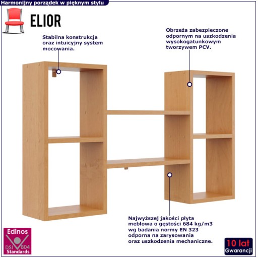 - Produkt posiada certyfikat jakości "Edinos Standards DSI 804", który potwierdza najwyższą jakość wykonania mebla oraz pełny stopień zgodności poszczególnych jednostek wytworzonego wyrobu z przyjętym wzorcem.