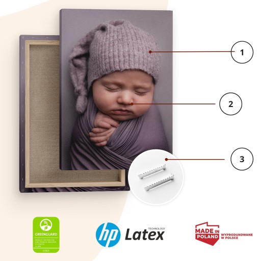 - Dzięki zadrukowanym bokom, obraz można powiesić bezpośrednio na ścianie, bez konieczności stosowania dodatkowych ram.