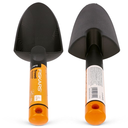 Szeroka łopatka ogrodowa Fiskars to ergonomiczne, wielofunkcyjne narzędzie do sadzenia i przesadzania roślin balkonowych, domowych oraz rabatowych.