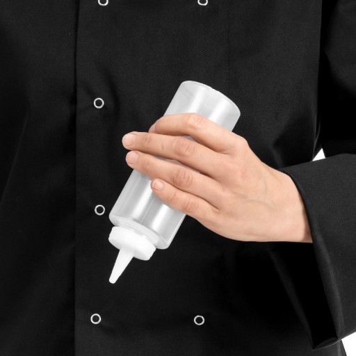 Dyspenser do zimnych sosów o pojemności 0,35 l marki Forgast wykonany z polietylenu. Kolor przezroczysty.
