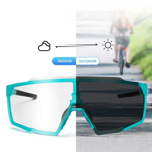Dzięki doskonałej technologii fotochromowej okulary rowerowe HD na słońcu automatycznie ściemniają się, a w pomieszczeniach rozjaśniają w zależności od intensywności światła.