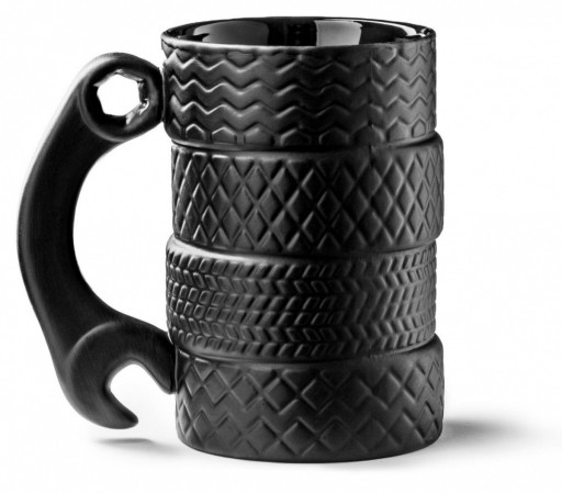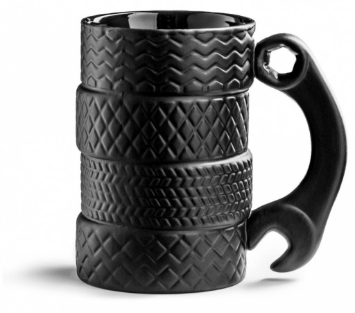 - kubek w kształcie 4 samochodowych opon, ucho w kształcie klucza w kolorze czarnym