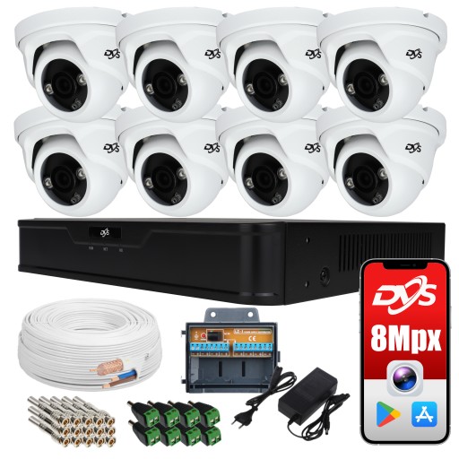 Profesjonalny zestaw 8 kamer przeznaczony do monitoringu mieszkania, domu, biura, firmy, sklepu, parkingu, hal magazynowych itp.