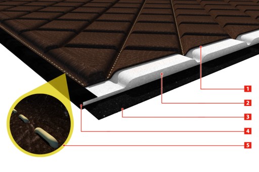 - Pianka poliuretanowa (4mm) o zwiększonej elastyczności, zapobiega ubytkom sztywności podczas użytkowania oraz zapewnia przepuszczalność powietrza dzięki otwarto-porowatej strukturze komórkowej.
