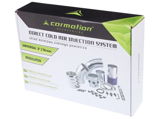 Układ dolotowy jest wyposażony w wysokiej jakości aluminiowe orurowanie, regulowane zaciski i wszystkie niezbędne akcesoria do kompletnego układu dolotowego zimnego powietrza.