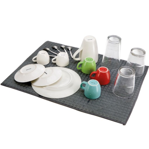 Doskonały do suszenia umytych naczyń, efektywne chłonne wypełnienie zatrzyma ociekającą wodę, a powierzchnia z miękkiego materiału ochroni naczynia przed uszkodzeniem. Ociekacz po użyciu można zrolować lub złożyć. Prać w temperaturze 30 °C i pozostawić do wyschnięcia, nie suszyć w suszarce.