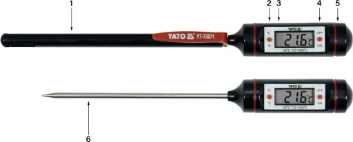 Termometr służy do pomiaru temperatury cieczy, ciał stałych i gazów (np. przy obsłudze układu klimatyzacji pojazdu) za pomocą sondy pomiarowej. Dzięki szerokiemu zakresowi temperatur oraz zasilaniu baterią termometr można łatwo wykorzystać w warsztacie.