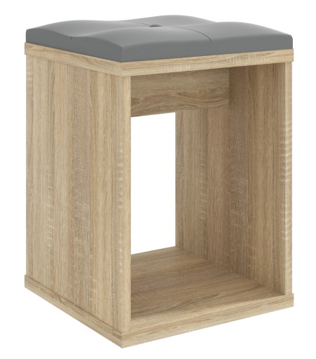 Jest on wygodny - siedzisko pokryte jest miekką pianką i obszyte materiałem w kolorze szarym. Na środku taboretu umieściliśmy elegancki guzik, podnoszący jego walory estetyczne.