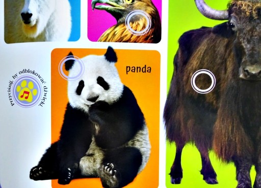 - Aby książka wprowadziła w świat różnorodnych dźwięków należy przycisnąć oznaczone pole łapką by odblokować dźwięki na stronie.