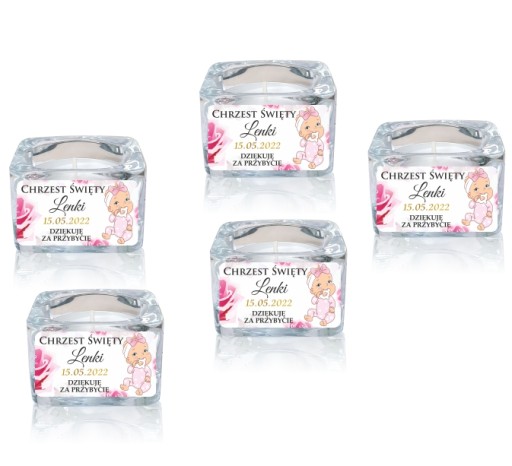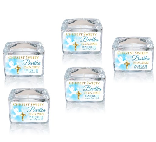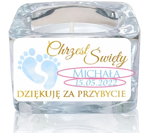 Przepiękne świeczniki na CHRZEST z personalizowaną naklejką