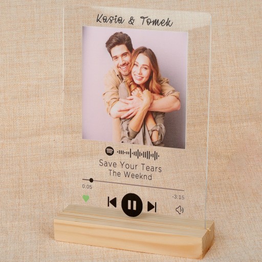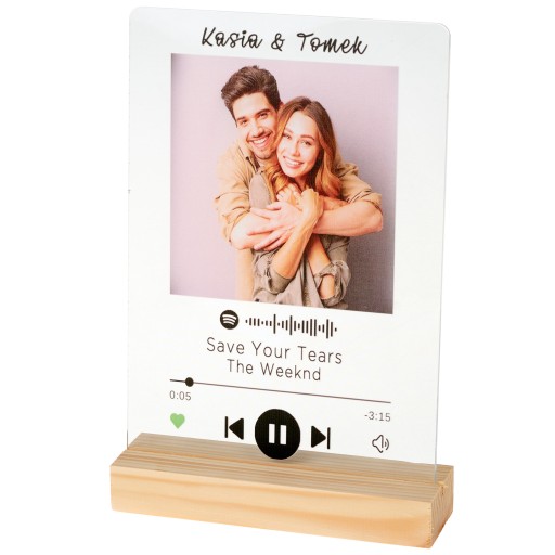 Ramka z ekranu jak w Spotify z waszym zdjęciem oraz waszą piosenką, która zapamiętacie do końca życia. Prezent ten będzie w każdej chwili przypominał wspaniałe chwile jakie przeżyliście przy tej piosence. Za pomocą kodu Spotify szybko możesz odtworzyć waszą piosenkę.
