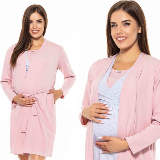 Jest mięciutki, miły i przyjemny w dotyku. Uszyty został z oddychającej, przewiewnej bawełny delikatnej dla skóry. Świetny dla kobiet w ciąży- delikatnie otula brzuszek, dając możliwość regulacji obwodu. Sprawdzi się w szpitalu, ale także w domu. Idealny na prezent dla przyszłej mamy.