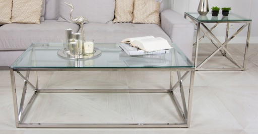Luksusowa srebrny stolik kawowy z metalu ze szklanym hartowanym blatem