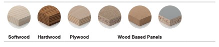 Jedno lub dwustronnie laminowane płyty, drewno lite, MDF, HDF, HPL, Solid Surface (Corian, Staron, HI-MAX)