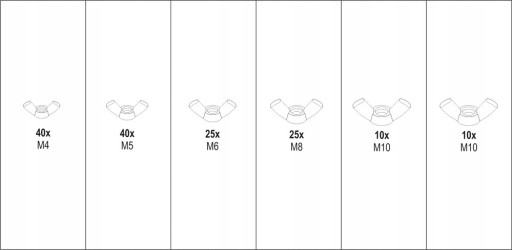 Zestaw 150 sztuk nakrętek metrycznych motylkowych zawiera rozmiary