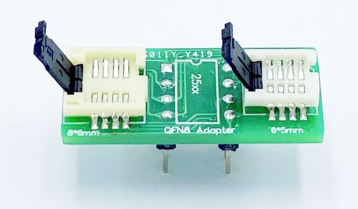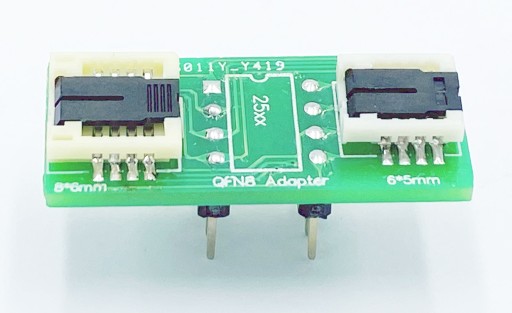 Adapter WSON8 (QFN8 / MLP8 / MLF8) SMD na DIL 8 - podwójny adapter dla szeregowych pamięci Flash, pamięci EEPROM, mikrokontrolerów oraz innych układów w obudowach WSON8 (QFN8 / MLP8 / MLF8) o rozmiarach 8x6mm oraz 6x5mm pozwalający na programowanie i używanie ich w podstawkach bądź na pad'ach DIL8 programatorów i innych urządzeń.