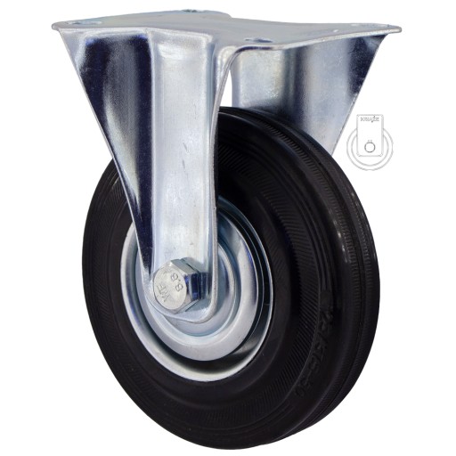 Koło posiada piastę metalową oraz oponę gumową, obudowa pokryta jest ocynkiem.
