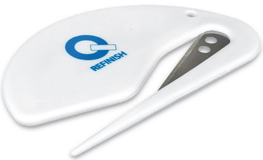Obcinak F-Mask, umożliwia szybkie (o gładkiej krawędzi) obcięcie potrzebnej długości folii lub papieru oraz precyzyjne wycięcie zbędnego fragmentu osłony z powierzchni elementu podlegającego naprawie.