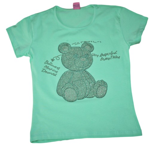 Bluzka z misiem i ozdobionymi drobnymi kamykami z przodu/tył gładki.