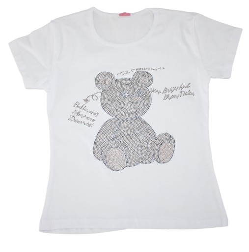 Bluzka z misiem i ozdobionymi drobnymi kamykami z przodu/tył gładki.
