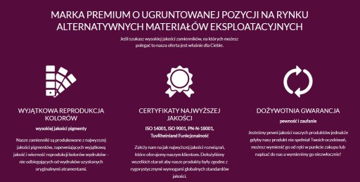 - Gwarantowana wydajność i jakość wydruku