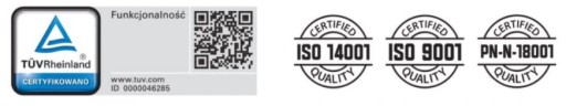 - Certyfikat TUV oraz ISO