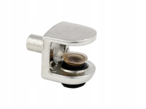 Metalowe mocowanie półki szklanej. Uchwyt ma wbudowaną regulację umożliwiającą chwytanie półek o różnej grubości. Wersja z bolcem.