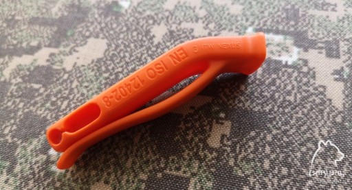 Wysokiej jakości gwizdek ratunkowy znanej firmy ITW Nexus. Z tyłu posiada dodatkowy klips do podczepienia, przypięcia do paska, taśm molle, wsunięcia do kieszonki, a także otwór do wsunięcia linki, paracordu – dzięki czemu gwizdek można nosić na szyi, zamocować do ekwipunku, kamizelki, a także schować do kieszonki w odzieży, plecaku i szybko go dobyć ciągnąc za linkę.