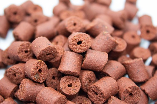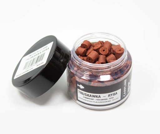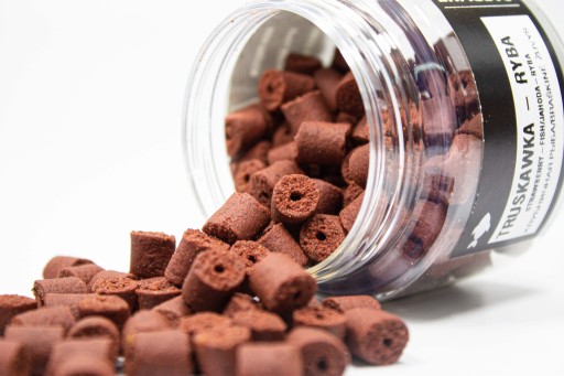 Pellet o czerwonym kolorze i intensywnym aromacie truskawki połączonym z aromatem rybnym