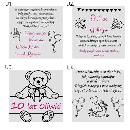 2. Pudełko z grawerem - w wiadomości do sprzedającego prosimy umieścić informację o grawerze (numer wybranego wzoru) oraz treść do uzupełnienia (zmianie ulegają tylko czerwone pola). Nie zmieniamy czcionek na wzorach tabliczek.