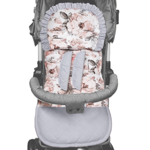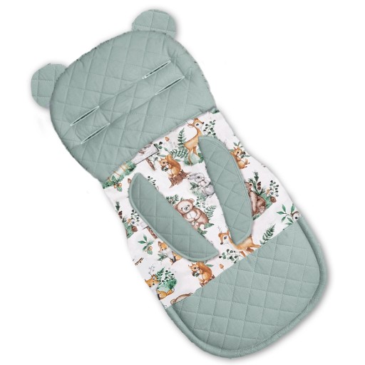 DWUSTRONNA BAWEŁNIANA Wkładka do wózka spacerowego + Podusia z uszkami + osłonki na pasy