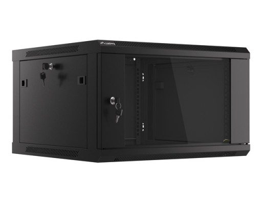 Szafa wisząca jednosekcyjna Lanberg WF01-6606-10B to rozwiązanie przeznaczone do budowy sieci, montażu okablowania oraz sprzętu w rozmiarze 19” o maksymalnym łącznym udźwigu do 60 kg. Może być stosowana w sieciach i serwerowniach zarówno w małych, jak i średnich firmach. Sprawdzi się również w instalacjach niskoprądowych takich jak sieci telewizji kablowych, systemy alarmowe, przeciwpożarowe, kontroli dostępu oraz systemy monitoringu CCTV i IP. Dzięki odpowiedniej konstrukcji, szafa umożliwia łatwy, samodzielny montaż. Charakteryzuje się szczelnością IP20, otwieranymi przednimi drzwiami z możliwością obrotu do 180°, wyposażonymi w zamek, zdejmowanymi bocznymi panelami (z zamkami w zestawie). Szafa posiada możliwość wprowadzenia okablowania poprzez górny i dolny panel. Całość wykonana jest z wysokiej jakości stali walcowanej, a dzięki konstrukcji do samodzielnego montażu (flat pack) znajduje się w płaskim opakowaniu co ułatwia transport. Dodatkowo w przesyłce załączone są dodatkowe akcesoria do mocowania szyn nośnych, śruby M6 oraz zaślepki paneli wejściowych.