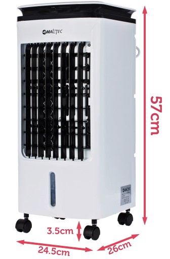 Wysoka jakość wykonania | Nowoczesny wygląd | Chłodzenie, nawilżanie, oczyszczanie | Trzy tryby pracy | Timer | Filtr | Duży zbiornik | Pilot | Kółka | Regulacja prędkości nawiewu | Oscylacja | Wkłady chłodzące |