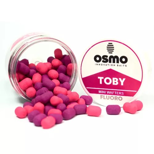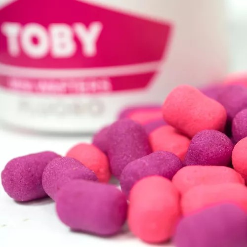 Mini Wafters Toby -rozmiar 6mm na 9mm -mix 2 bardzo dobrze widocznych fluo kolorów różowy i fioletowy -aromat owocowo-ziołowy -wyporność dostosowana do haków z grubego drutu typu kamasan t360 (rozmiar 12 i w dół ) – najlepsza prezentacja na bagnecie. -opakowanie 50 ml