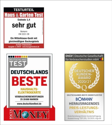 Certyfikat TEST DEUTSCHLANDS BESTE został przyznany na podstawie badań przeprowadzonego przez „Germanys best household electronics”. W ramach testu porównane zostały produkty z ponad 20 000 marek z 274 segmentów rynkowych.