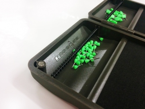 Wysokiej jakości piórnik do przechowywania przyponów firmy Korda. Wykonany jest z mocnego plastiku, który pokryty został gumowaną powłoką co zapewnia wieloletnie użytkowanie. Tak jak w przypadku wszystkich pudełek firmy Korda ten piórnik posiada także magnetyczne zamknięcie, które zapobiega niechcianemu otwarciu. Zaprojektowany został do przechowywania aż do 90 gotowych przyponów. Wewnątrz znajdują się dwie tablice wykonane z mocnej pianki oraz prążkowane zaczepy, które zapobiegają nakładaniu się jednego haczyka na drugi. W zestawie znajduje się także 30 pinów do zaczepiania gotowych przyponów oraz 15 podwójnych pozwalających na zapięcie przyponów o nieokreślonej jeszcze długości. Całość wykończona subtelnym logotypem Korda.