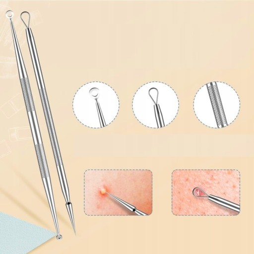 - ✔️ 100% Stal Nierdzewna: Wszystkie narzędzia do usuwania zaskórników wykonane są z trwałej i bezpiecznej stali nierdzewnej.