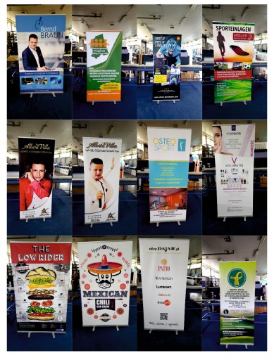 ROLL-UP sprzedawany jest z wydrukowaną i zamontowaną grafiką, gotowy do użycia.