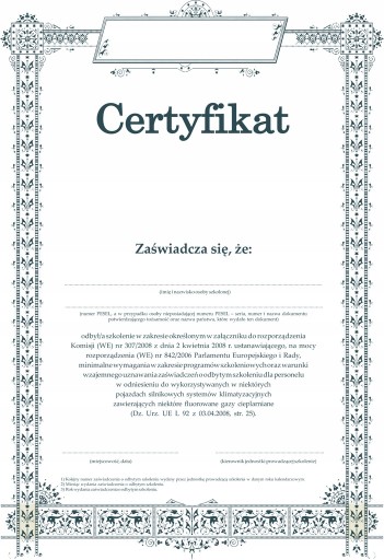 - Obowiązkowe szkolenia z odzysku substancji kontrolowanych oraz fluorowanych gazów cieplarnianych dla obsługujących układy klimatyzacji.