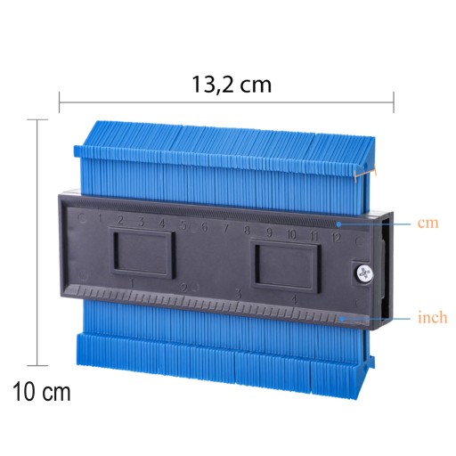 Uniwersalny 12- centymetrowy miernik do odrysowania konturów to idealne rozwiązanie dla każdego planującego remont domu. Narzędzie służy do odrysowania konturu przedmiotu a następnie odwzorowania go np. na panelach podłogowych czy płytkach. Pozwoli ci uzyskać idealne proporcje, dzięki czemu zawsze i wszedzie uzyskasz idealny kształt np. płytek do krzywej sciany itp. Szpilki we wzorniku są bardzo elastyczne, dzięki czemu pomiar nigdy nie był aż tak prosty a cięcie stanie się przyjemnością.