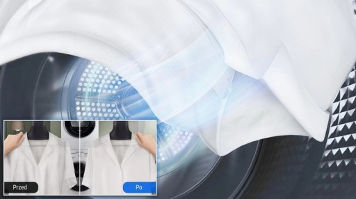 Włącz funkcję Bez zagnieceń, a Twoje ubrania po wyjęciu z suszarki nie będą wymagały prasowania lub prasowanie ich będzie o wiele łatwiejsze. Nie musisz też pamiętać o niezwłocznym wyjęciu ubrań z suszarki po zakończonym cyklu. Bęben pralki będzie obracał się jeszcze przez 180 minut, aby uniknąć powstania zagnieceń.
