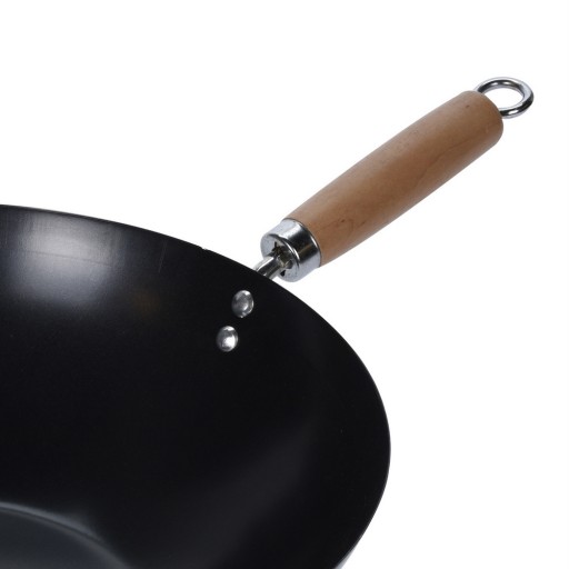 Patelnia typu wok o średnicy 35 cm. Wyposażona w wygodny uchwyt oraz nieprzywierającą powłokę non-stick. Praktyczna i poręczna, z rączką umożliwiającą zawieszenie.