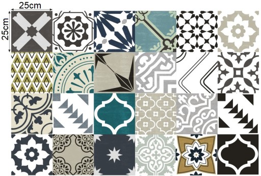 Przedmiotem aukcji jest zestaw 21 naklejek w rozmiarze 25x25cm idealnych do szybkiej i taniej zmiany wyglądu wnętrza. Świetnie nadają się do maskowania starych wzorów lub po prostu do zmiany koloru płytek kuchennych łazienkowych podłogowych lub schodów nadając wnętrzu zupełnie inny charakter.