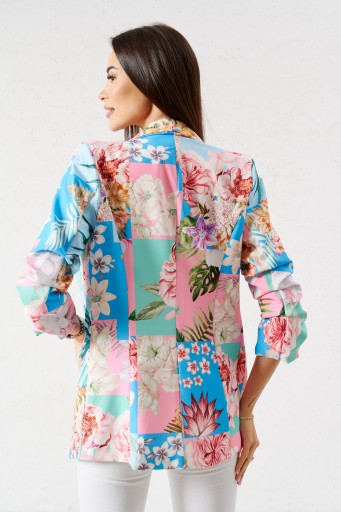 Ciekawy żakiet w kolorowe kwiaty pastelowe