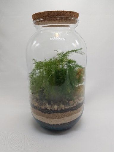 Jest to żywy kawałek natury, który przez zamknięcie go w słoju wytwarza mikroklimat i staje się samowystarczalny. Jedynym Twoim zadaniem będzie przetrzeć szkło od czasu do czasu z kurzu. Dlatego nadaje się na prezent dla każdego! Stanowi jedyną w swoim rodzaju ozdobę wnętrz.