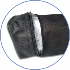 Wzmocniona torba transportowa gwarantuje bezpieczeństwo podczas przenoszenia produktu. Wyposażona w wygodny zamek błyskawiczny pozwala łatwo wyjąć i schować roll-up.